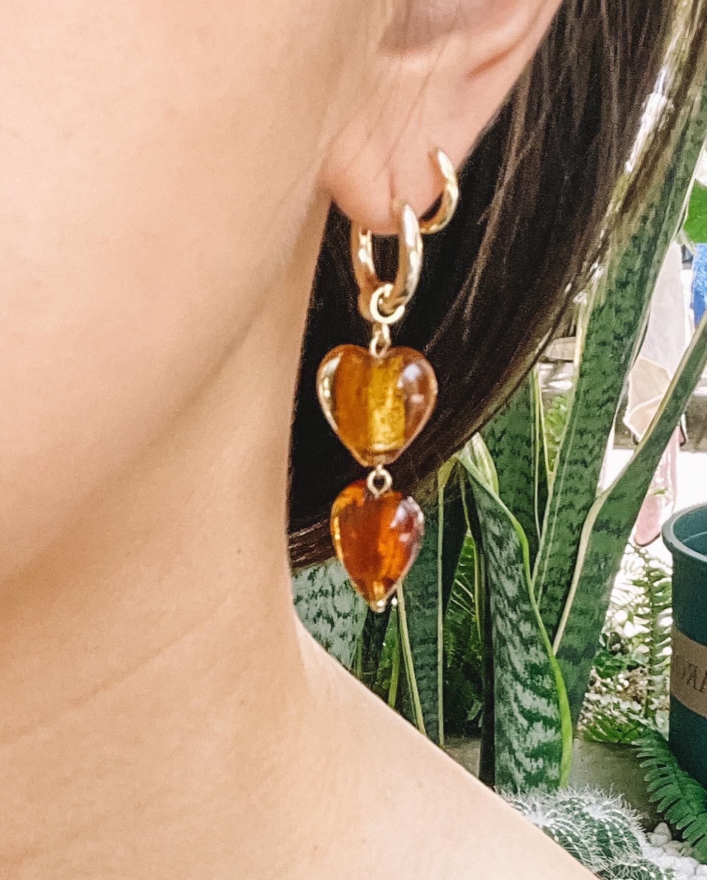 フープにハートのガラスビーズが可愛いピアスです。季節を選ばず通年でオシャレのアクセントとして活躍します。